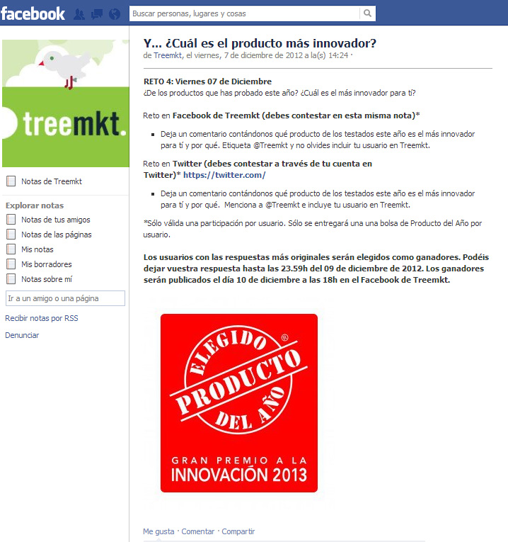 La plataforma de Treemkt, a través de facebook y de su blog premia a los seguidores con la Compra del Año.
